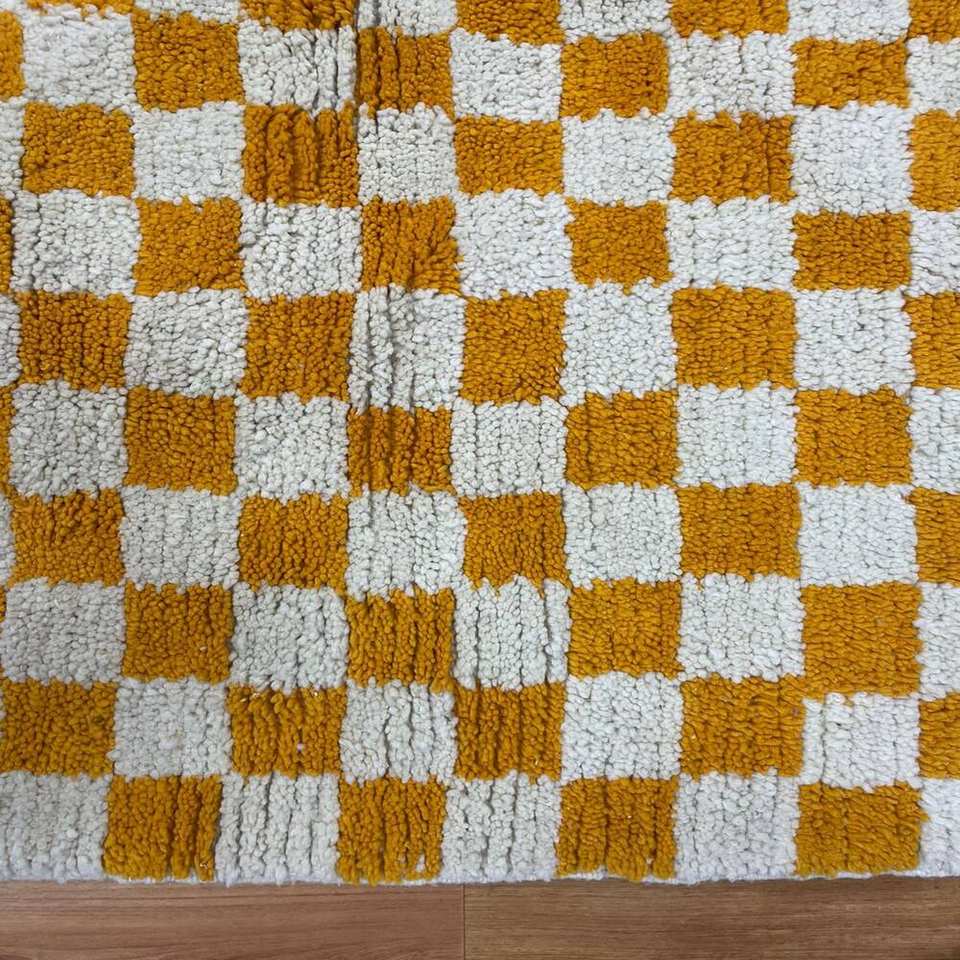Orange and White Color Checkered Carpetshand Block Print Pattern Dhurries 100% Cotton Material Carpet for Home Living Room Decor