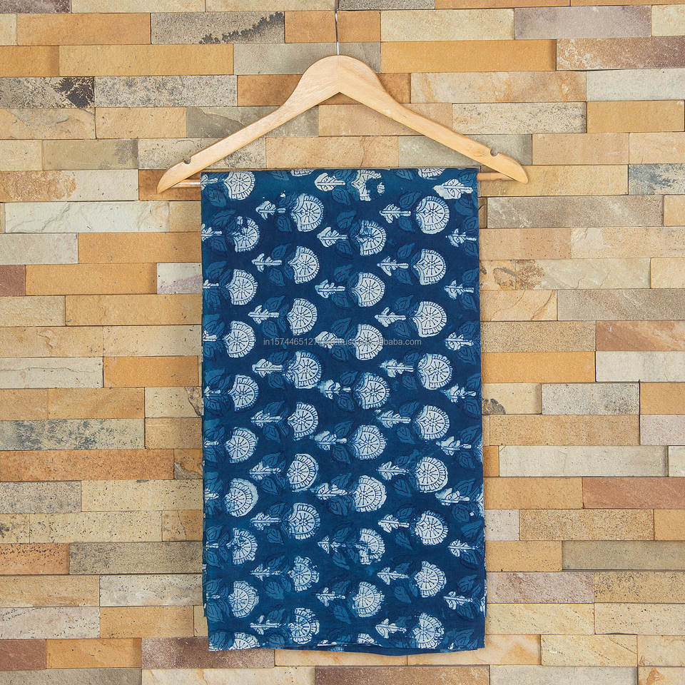 Organic 120gsm Indigo Floral Block Print Cotton Fabric for Girls Woven Quilting Dressmaking Home Textile for Shirts Suits