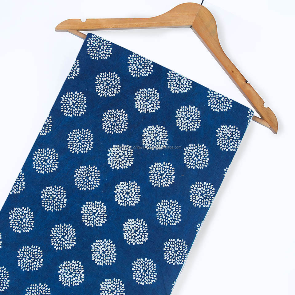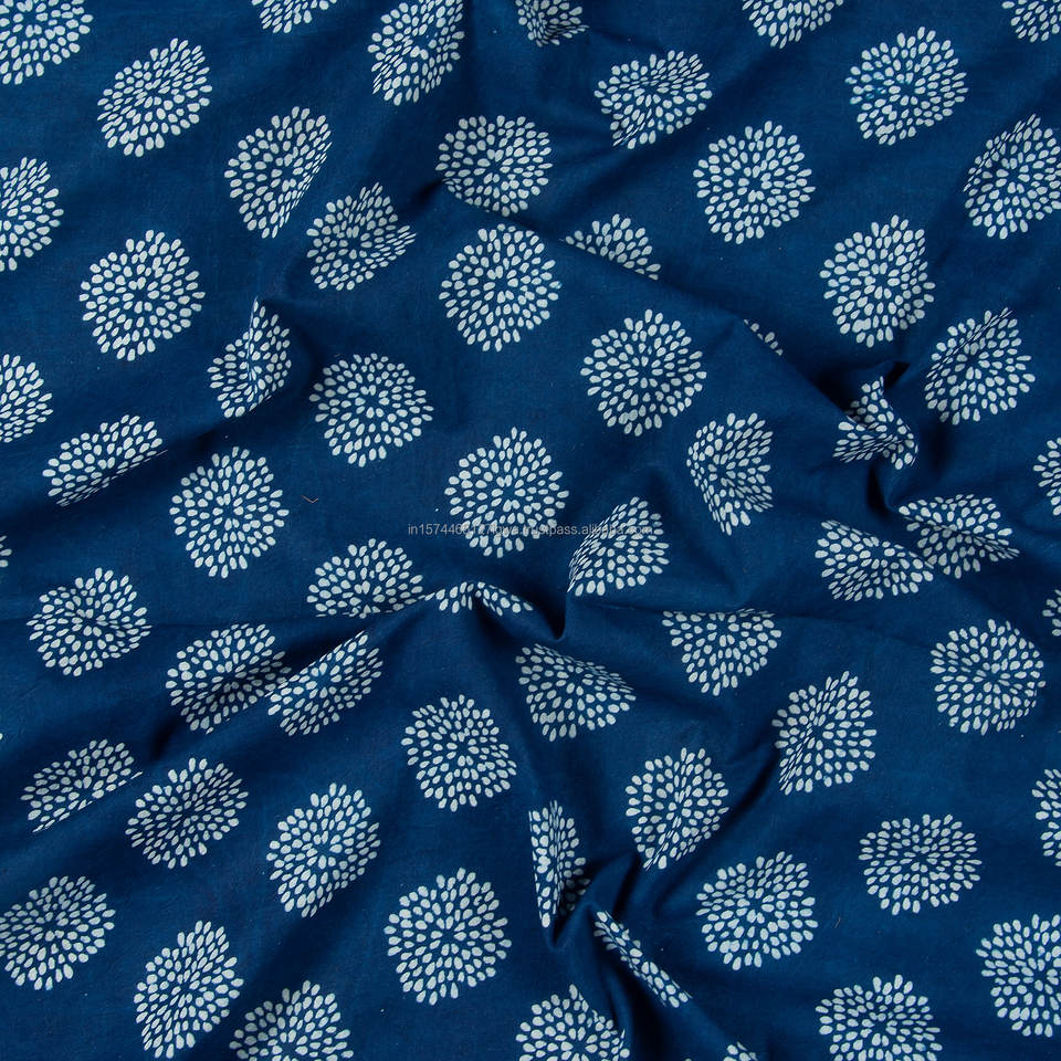 Organic 120gsm Pure Cotton Woven Fabric Hand Block Print Design Indigo Dot Tea Concept Stylish Lightweight Curtains Covers