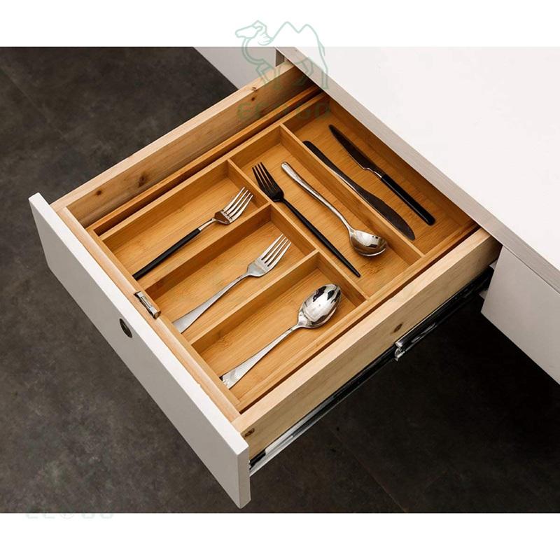 Organic Bamboo Expandable Drawer Organizer Waterproof Cooking Utensil Holder 7 Section Cutlery Holder