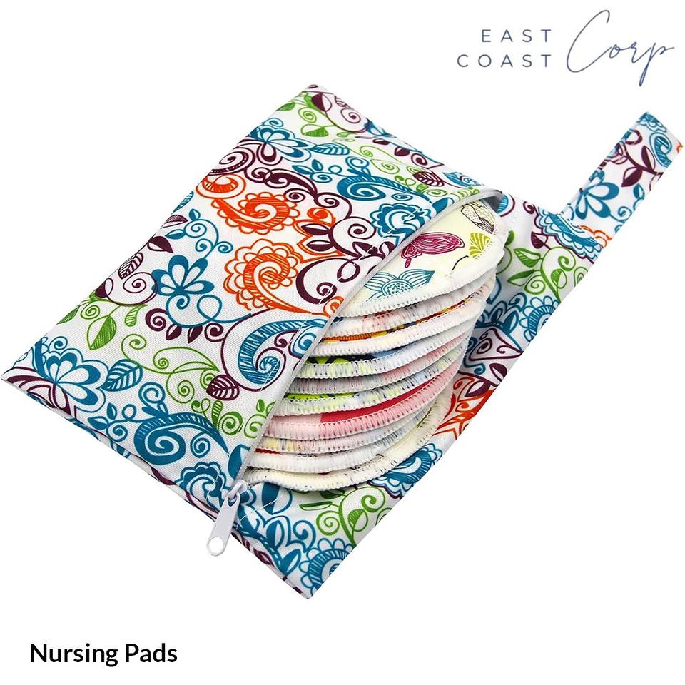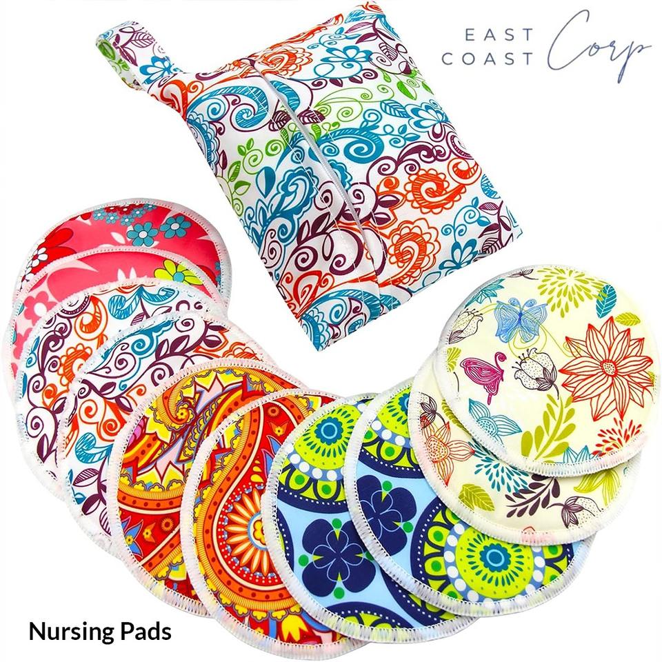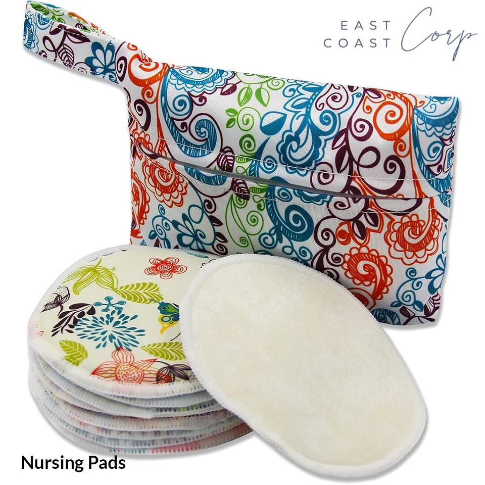 Organic Bamboo Nursing Pads - 10 Washable Pads + Wet Bag + Wash Bag, Breastfeeding Nipple Pads for Maternity