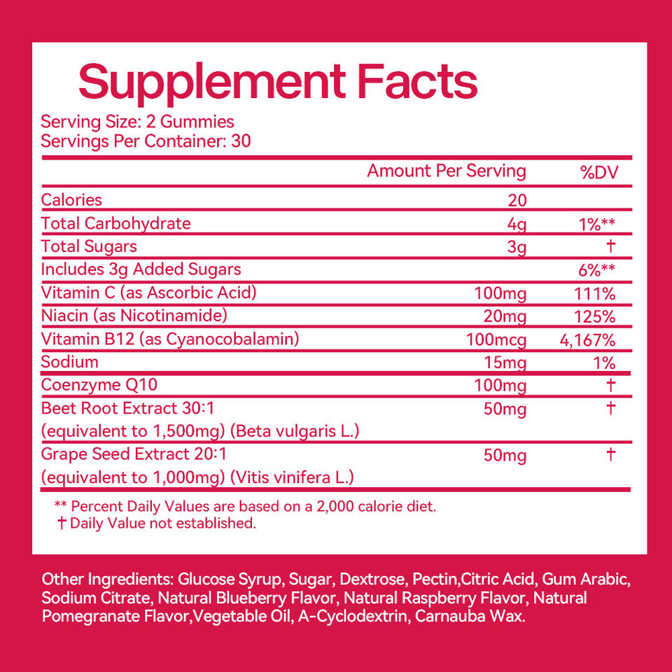 Model Number:Beetroot Gummies with Vitamin12 & C Grape seed