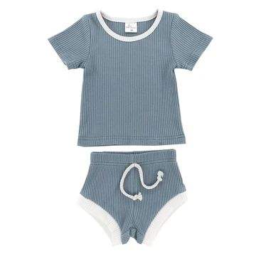Organic Cotton 100% Ribbed Knitted Pajama Set for Baby Boys Girls Summer Short Sleeve Tshirt Shorts Sustainable Infant Clothing