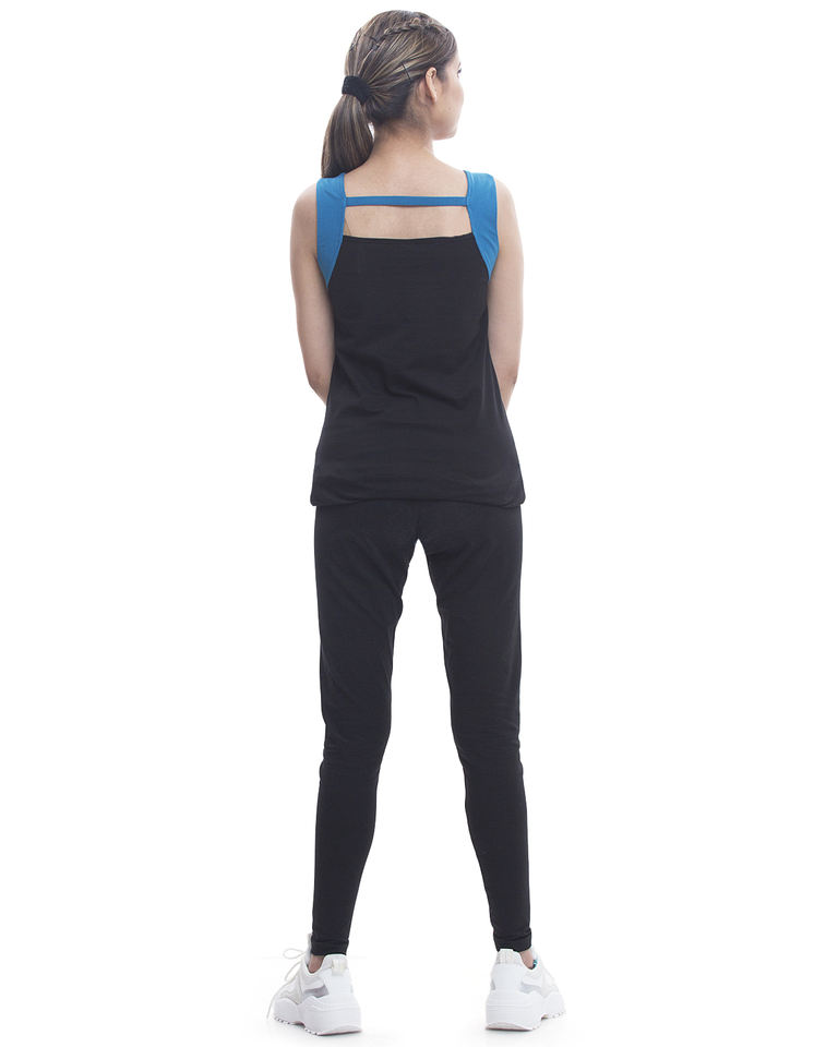 Organic Cotton Fabric Black Yoga Top Contrast Blue Band Back Fitness Sportswear Girls Adults Feminine Style Sets