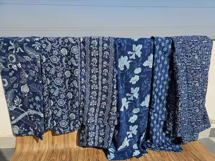 Organic Cotton Fabric Hand Printed Block Print Indigo Floral for Curtains Covers and Lining-Indian Style Woven Fabric