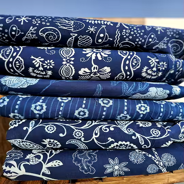 Style:block print fabric, customized print, dye print, floral print, indigo blue