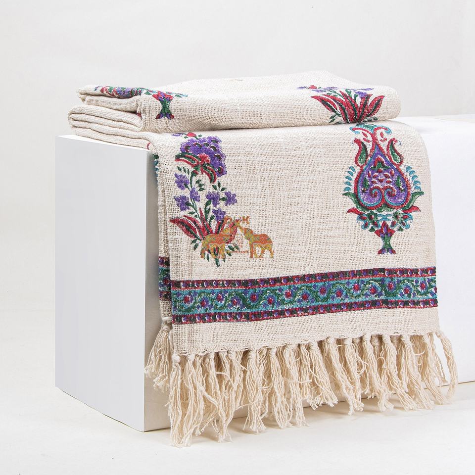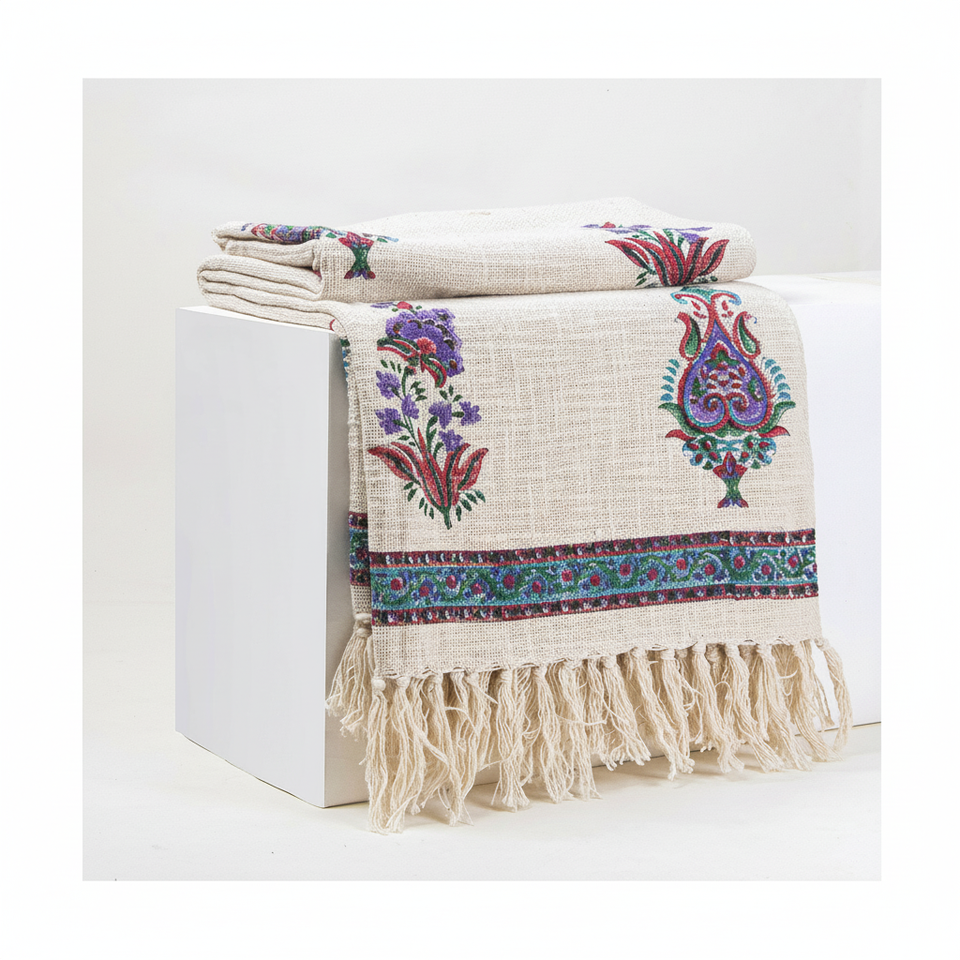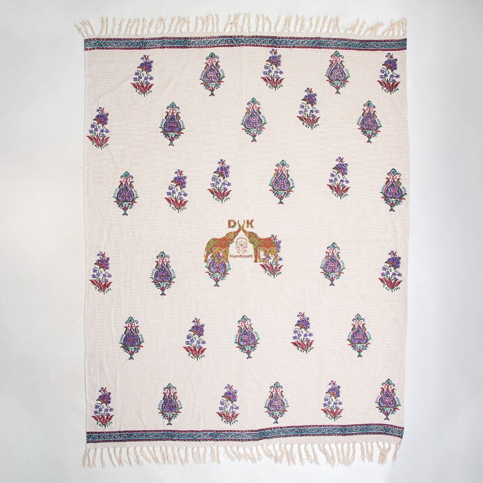Organic Cotton Handmade Floral Block Print Throw Customized Decorative Sofa Blanket