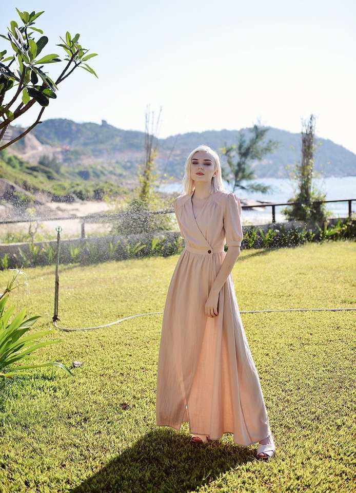 Organic Cotton Long Dress for Women Linen Wrap Style with Sleeves Breathable and Timeless Wardrobe Staple