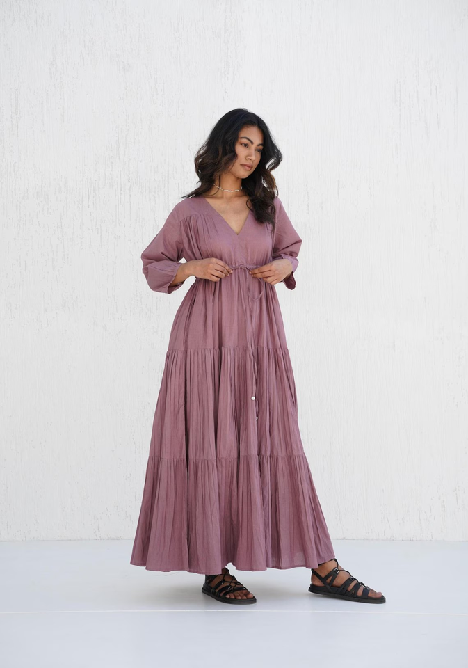Organic Cotton Maxi Dress Tan Orange Tiered and Layered Dress Boho Tunic with Pockets Comfortable Loose Fit Custom Sizing