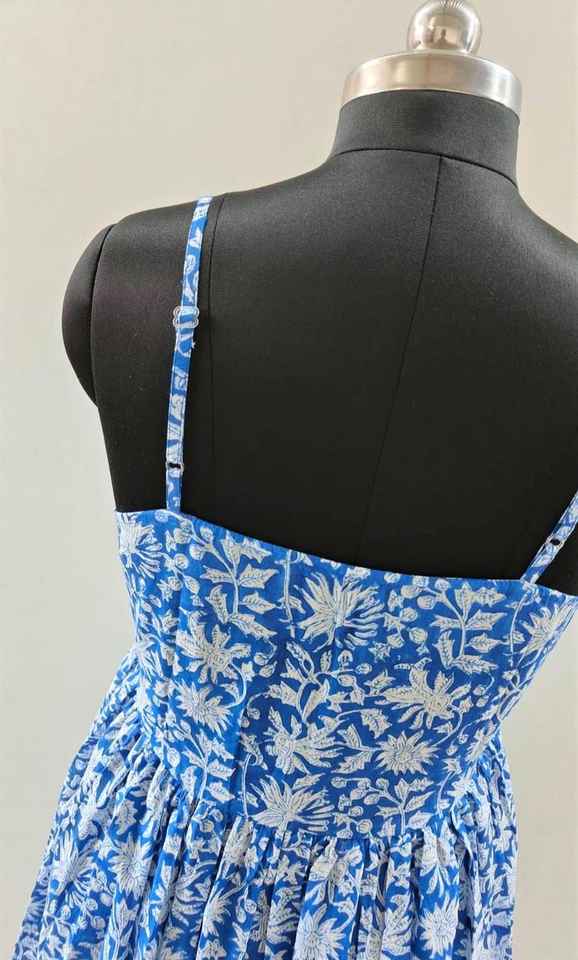 Organic Cotton Mini Dress Block Print Floral Summer Beach Dress for Women
