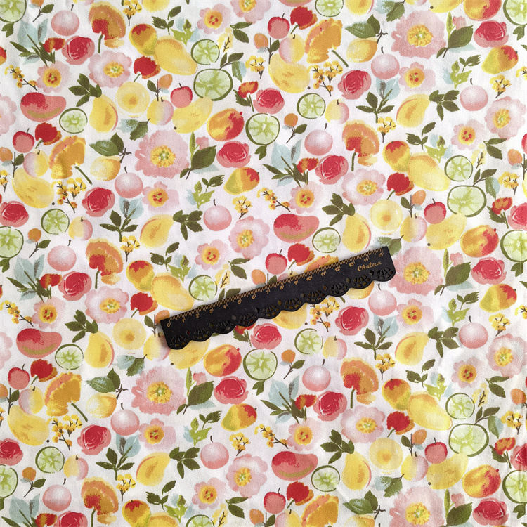 Organic Cotton Printed Cloth with Floral Fruit Design Handmade Twill Fabric for Bed Clothing Home Decor Cotton Poplin Fabric