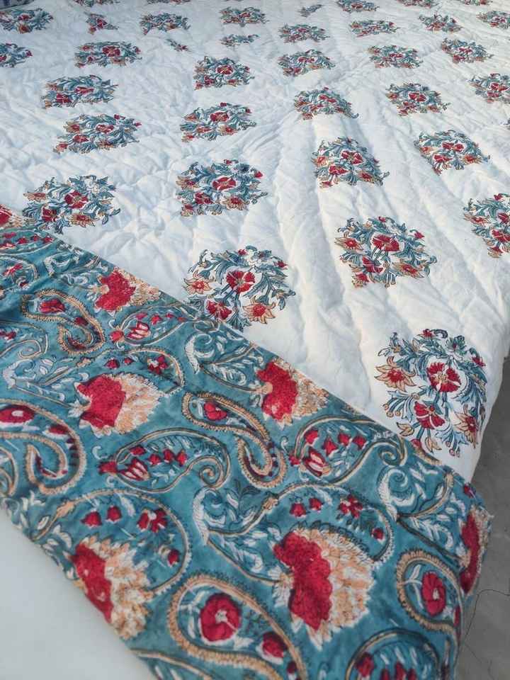 Organic Cotton Queen Razai Quilt Handmade Quilted Warm Kantha Bedspread