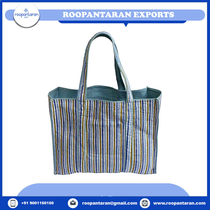 Organic Cotton Tote Bags Wholesale Traditional Hand Block Printed Cotton Quilted Tote Bag With Inner Pockets for Sale