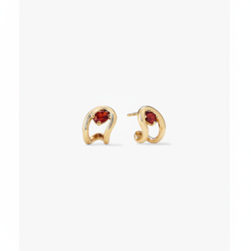 Organic Dme Curve Gemstone Huggies Fine Cuff Earrings