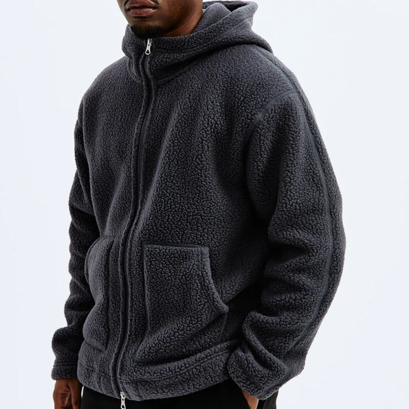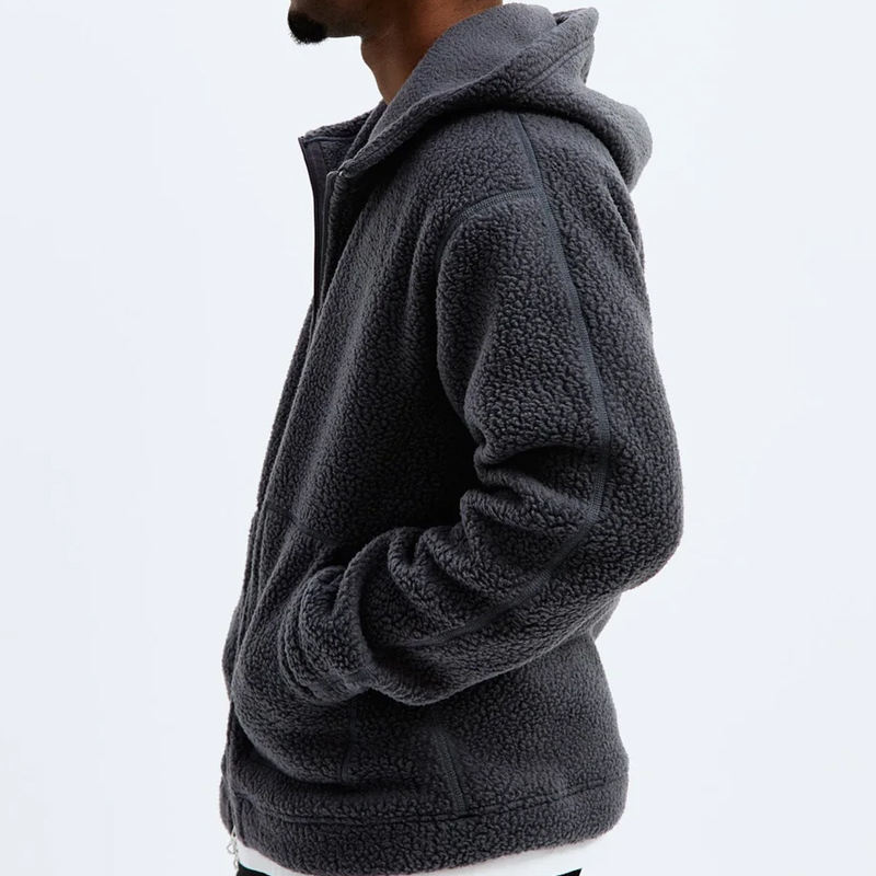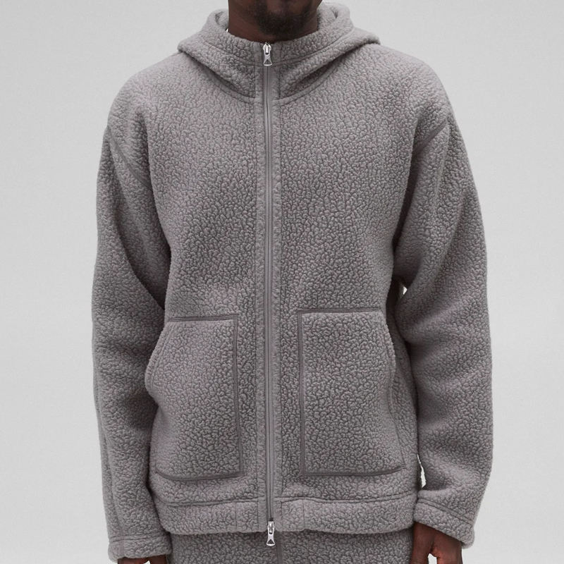 Organic Fleece Men's Hoodies Jackets 100% Polyester Men's Pockets Sweatshirt Jacket Teddy Flannel Full-Zip Hoodie for Men