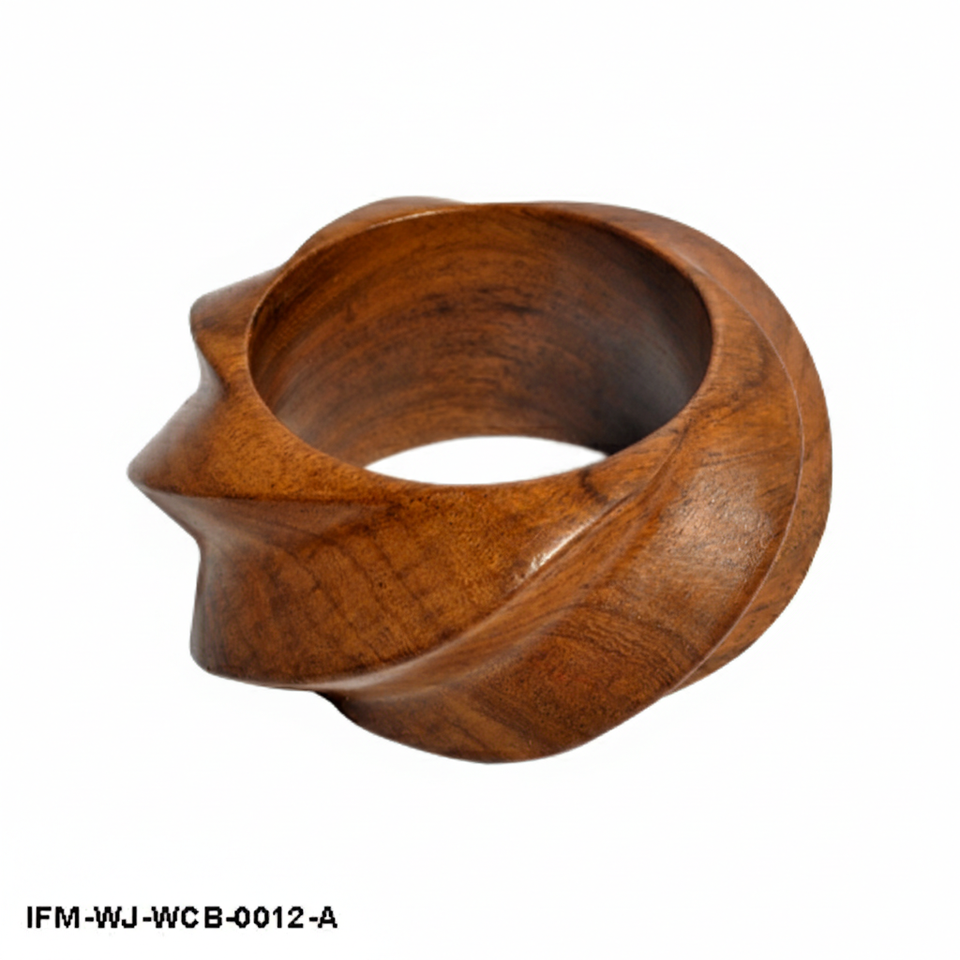 Organic Hand-Carved Wooden Wave Bangle: Bold Geometric Statement Bracelet in Natural Polished Wood Gift For Her