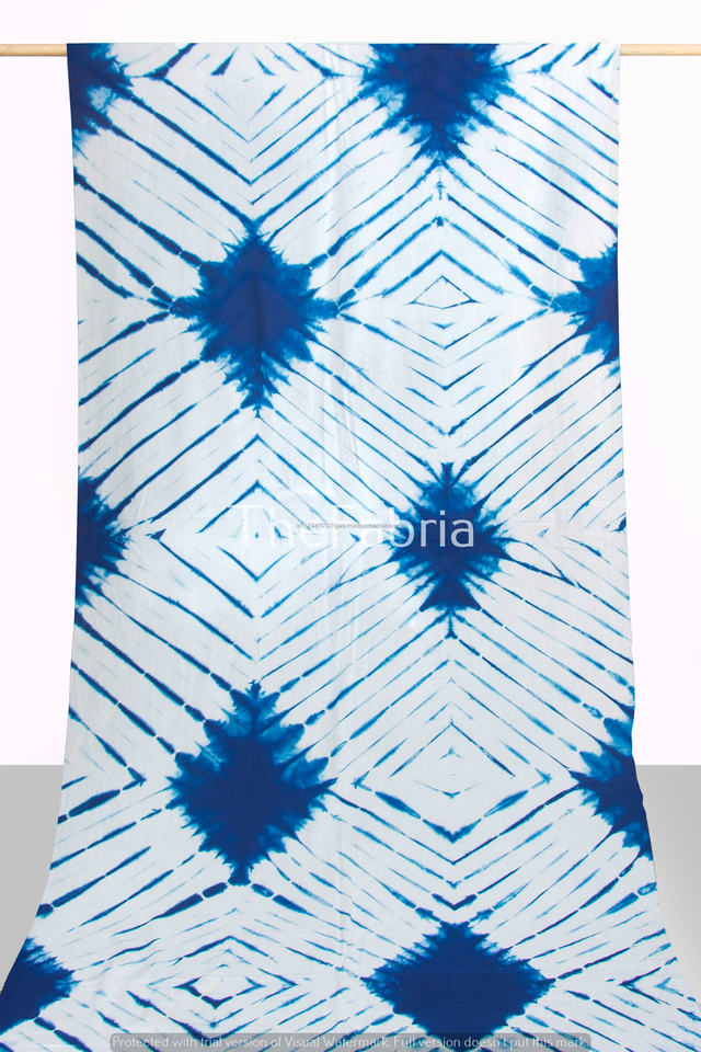 Organic Hand-Printed Tie-Dye Cotton Fabric White or Blue, Ideal for Western Dresses & Apparel