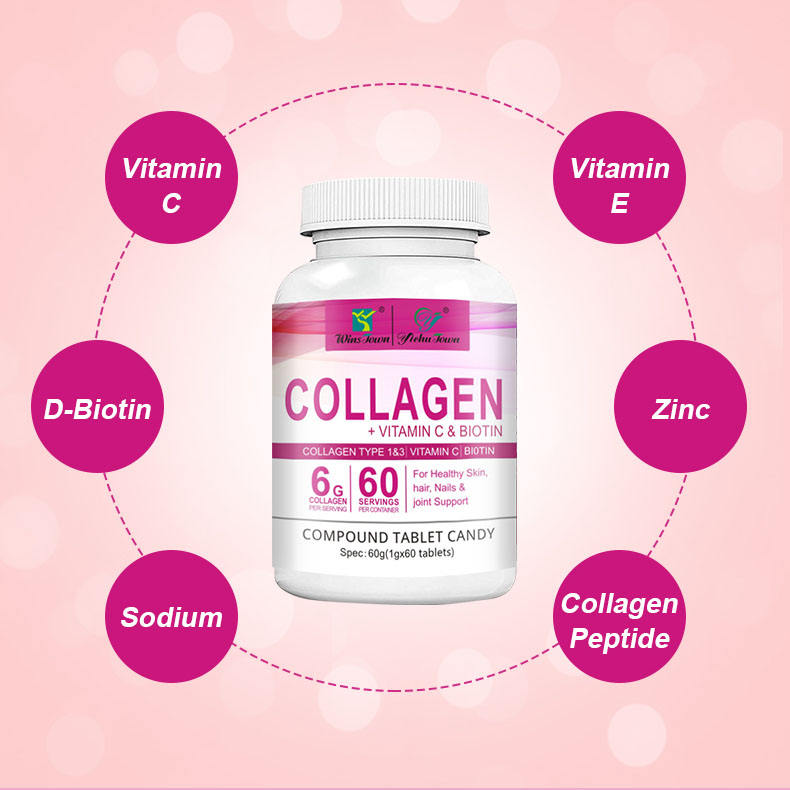 Organic Herbal Supplements Tablets Healthy Natural Collagen Vitamin C Biotin for Adults Smooth Hair Dietary Pills