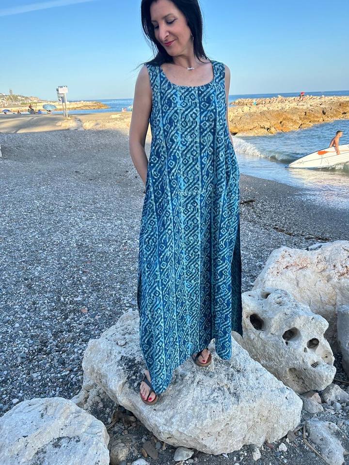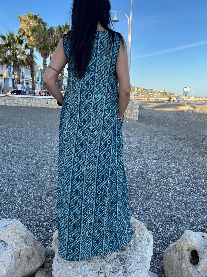 Organic Indigo Dress Blockprint Cotton Dress Gifts For Her Resort Wear Loungewear Swim Cover Up Mothers Day Gift