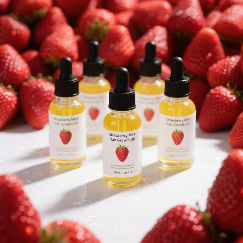 Organic Peppermint & Jamaican Black Castor Vegan & Rosemary Infused Hair Growth Oil for Men Homemade African Mint Strawberry