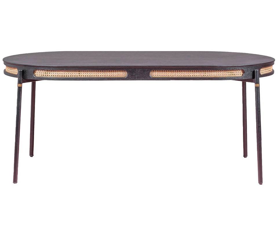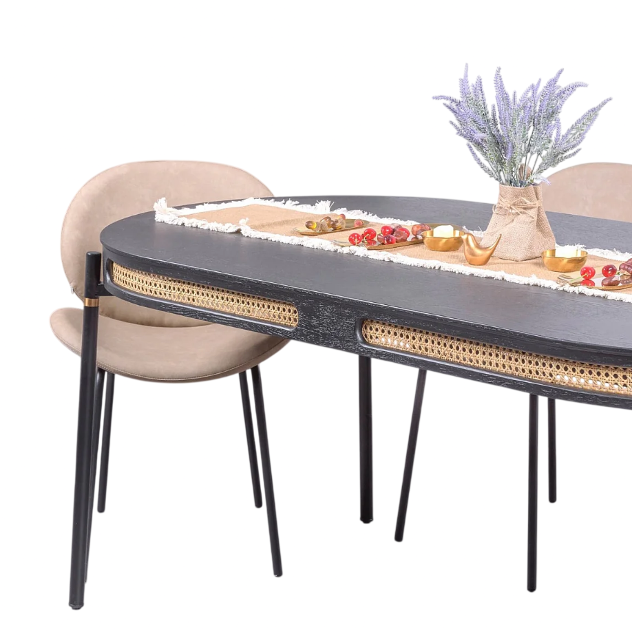 Organic Shape Industrial Mango Wood Top Metal Base Folding Leg Eco Friendly Durable Black Finish Oval 6-Seater Home Dining Table