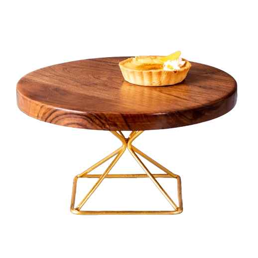 Organic Wooden Cake Stand With Steel Base Eco Friendly Sustainable Handcrafted Acacia Wood High Quality Home Decorative Item