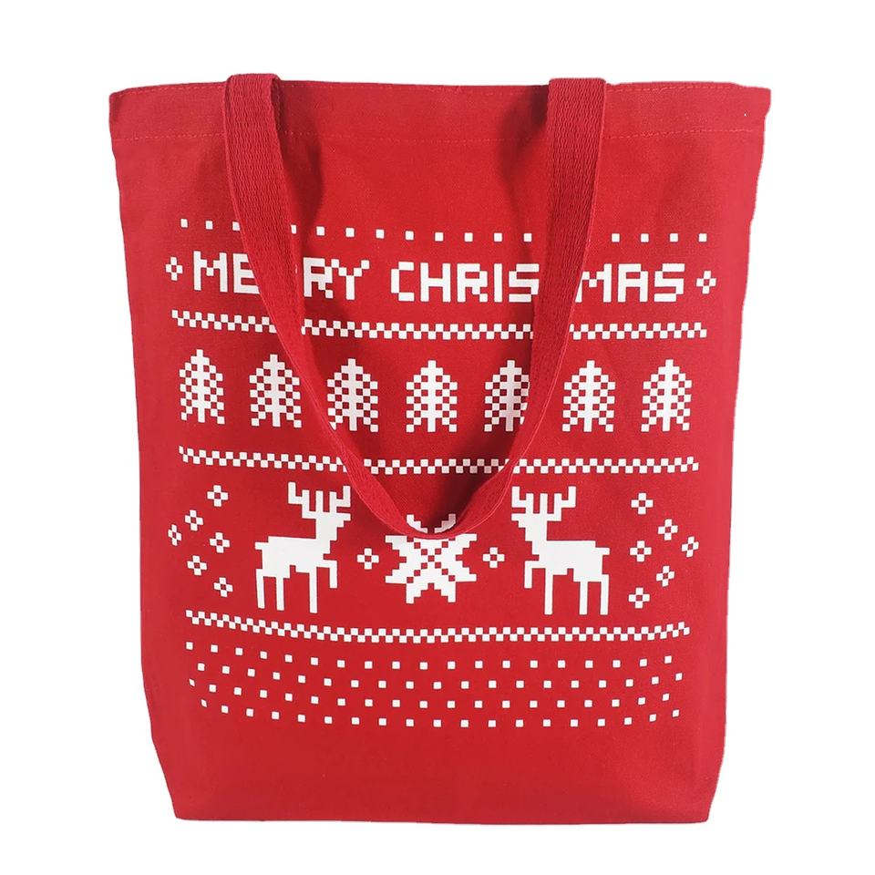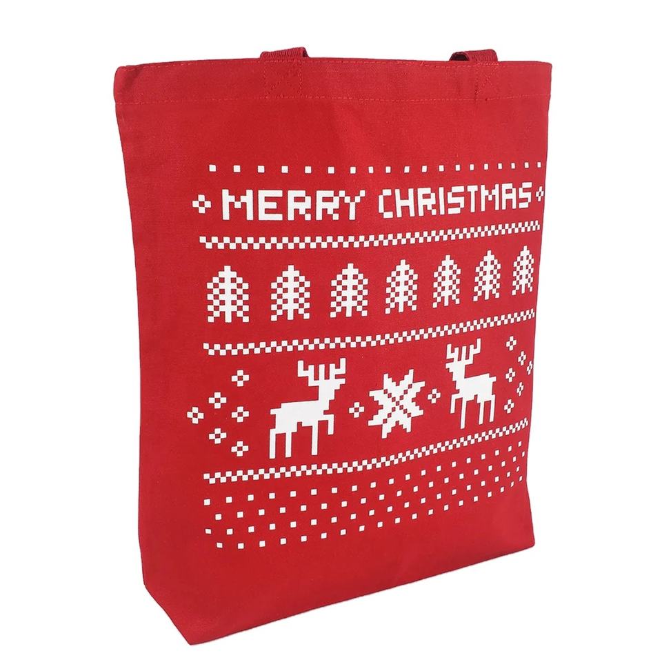 Christmas Printed Organic Biodegradable Cotton Shopping Bags with Comfortable Shoulder Carry Handle