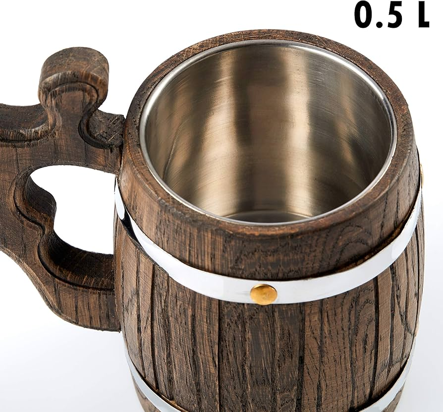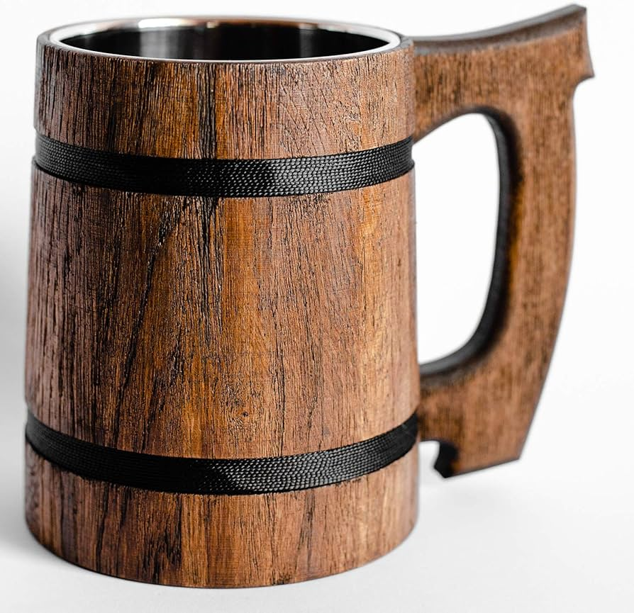 Organic wooden beer stein with metal handle eco-conscious Biodegradable wooden cup handcrafted for beer hot beverages Reusable
