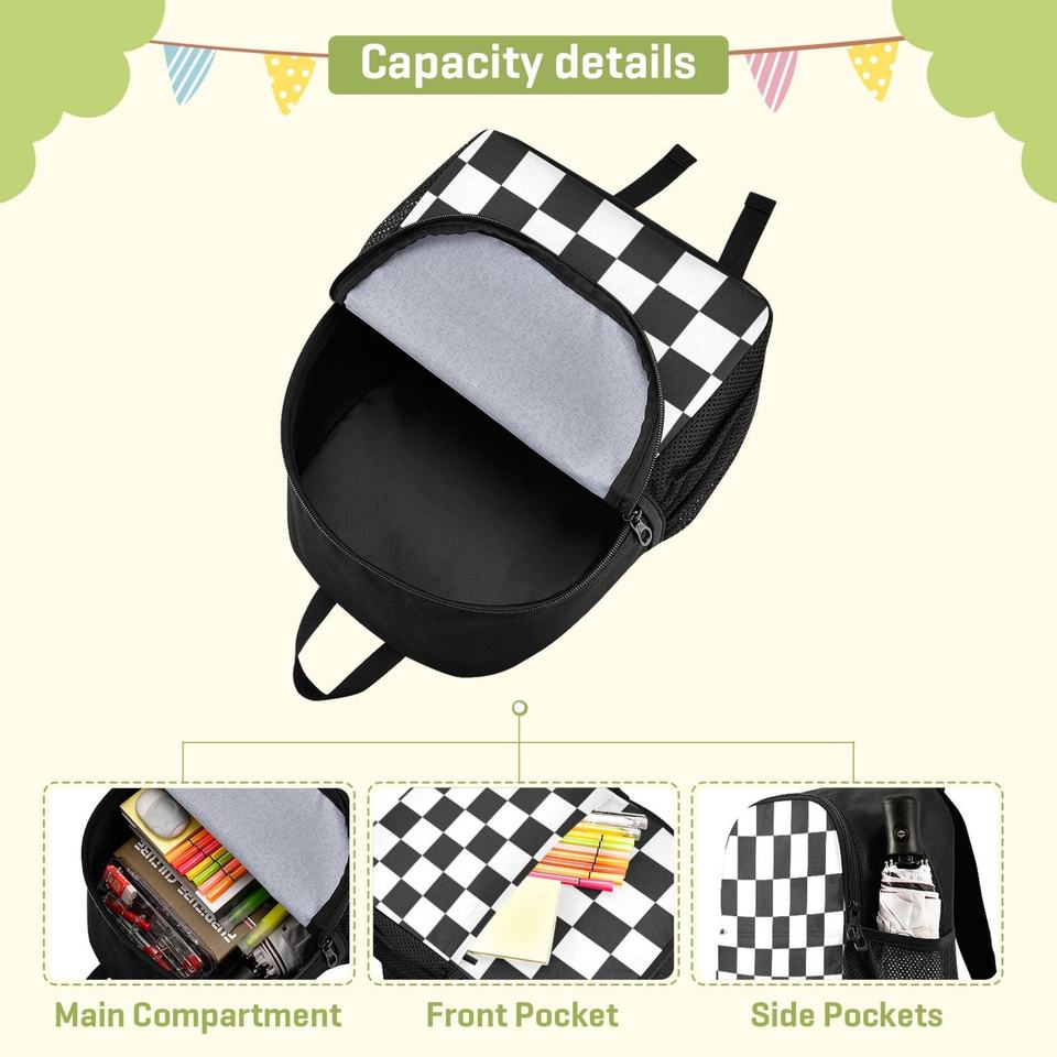 Organizing Custom Checker Flag Print Backpack Trendy Simple Little Book Bag for Primary School Bags