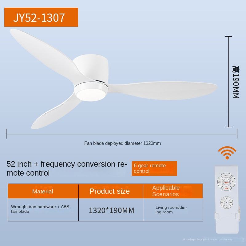 Modern 52-Inch FCJ LED Ceiling Fans with Remote Control Dc Motor ABS Metal Iron Glass Lamp Body for Living Room or Hotel