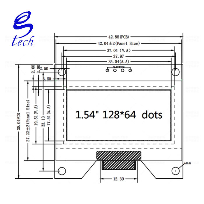 Original 1.54-inch OLED CH1116 128x64 Monochrome Display Module with LED Backlight IIC/I2C Interface
