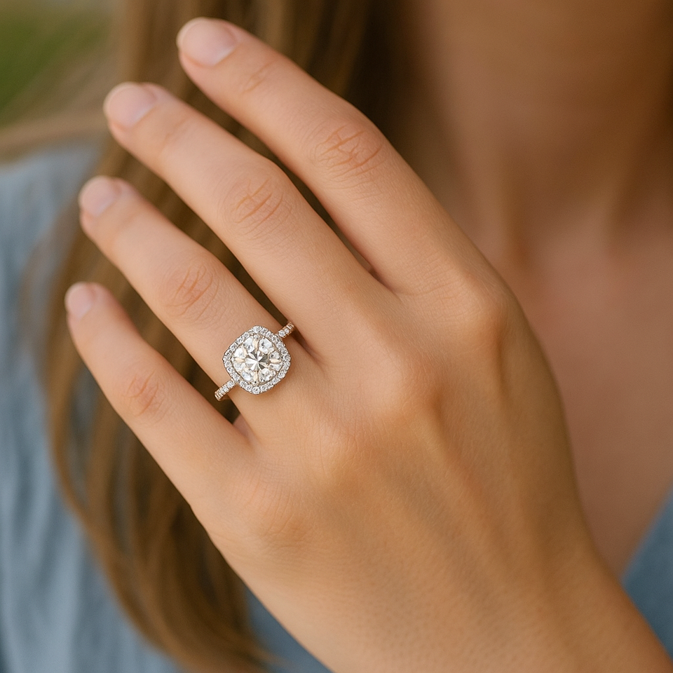 Original 7.80mm Cushion Cut Moissanite Loose Stone Engagement Ring Band in 10K 14K 18K Gold with IGI Certificate Wedding Jewelry