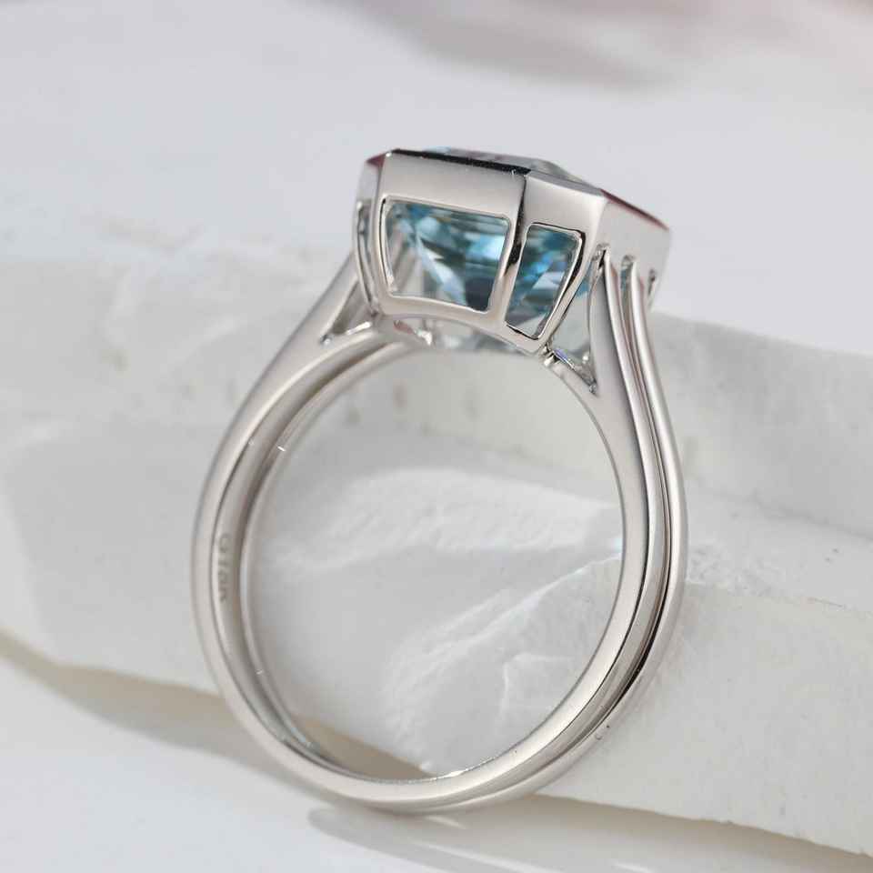 Original Aquamarine Blue Asscher Cut Moissanite Diamond Solitaire Ring 925 Silver Fine Jewelry for Party Gift for Friends