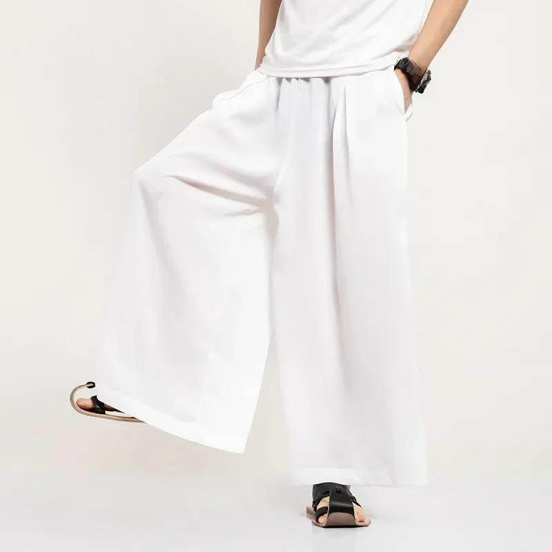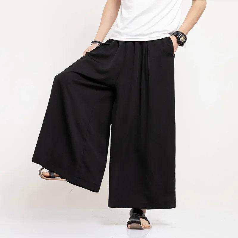 Original Bell Bottoms Men's Cropped Pants Japanese Mountain Style Dull Black Samurai Pants Loose-fit Straight-leg Casual