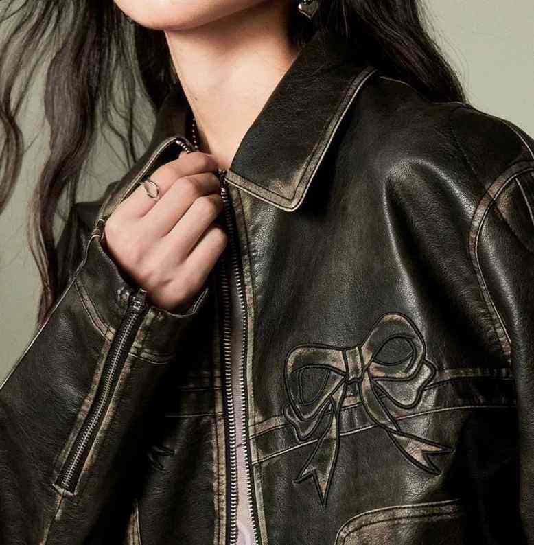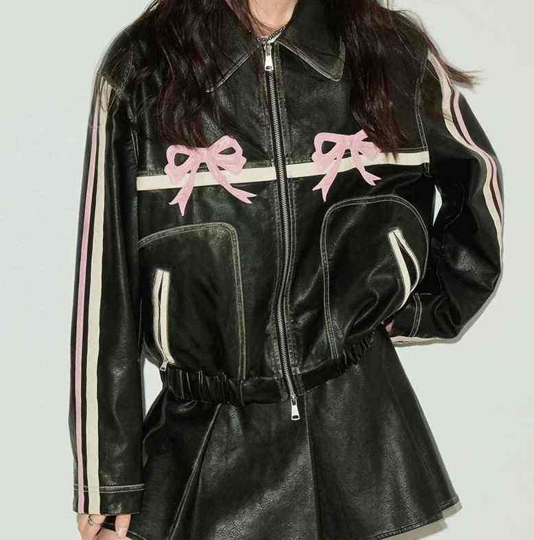 Original Black Women's Retro Style PU Leather Coats New Genuine Loose Casual Hip Hop Street Winter Zipper PCS-R-90