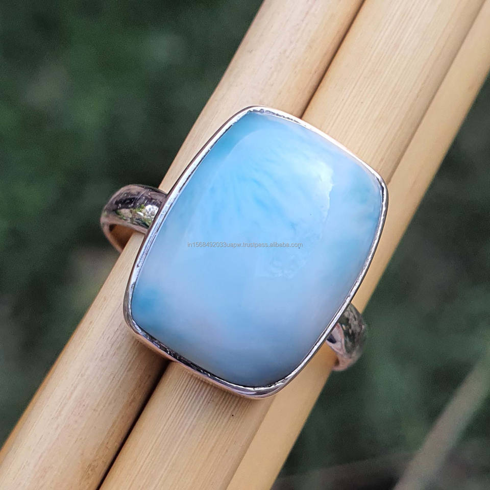 Original Blue Larimar Gemstone Bezel Set Ring for Men 925 Sterling Silver Simple Statement Wholesale Jewelry Moissanite Main