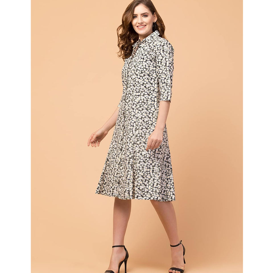 Original Branded Eco-friendly Western Style Solid Knee-Length V-neck Short Sleeve Dress for Women Premium Fabric Washable Party