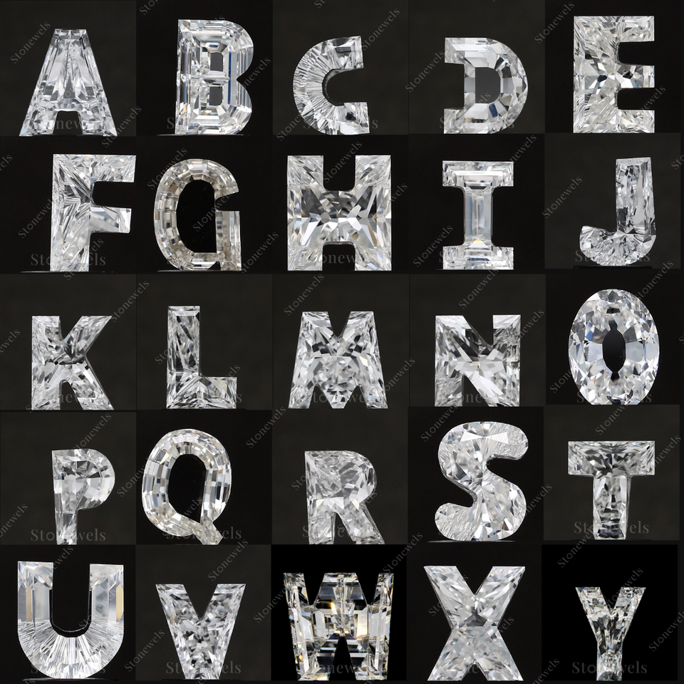 Product name:Solid Lab Grown Fancy Blue Initial Alphabet Letter A to Z Diamond Ring