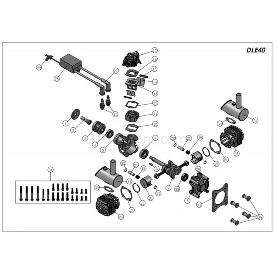 Original DLE Engine DLE-40cc Twin Gasoline W/ Electronic Ignition for RC Plane Twin Gasoline RC Plane