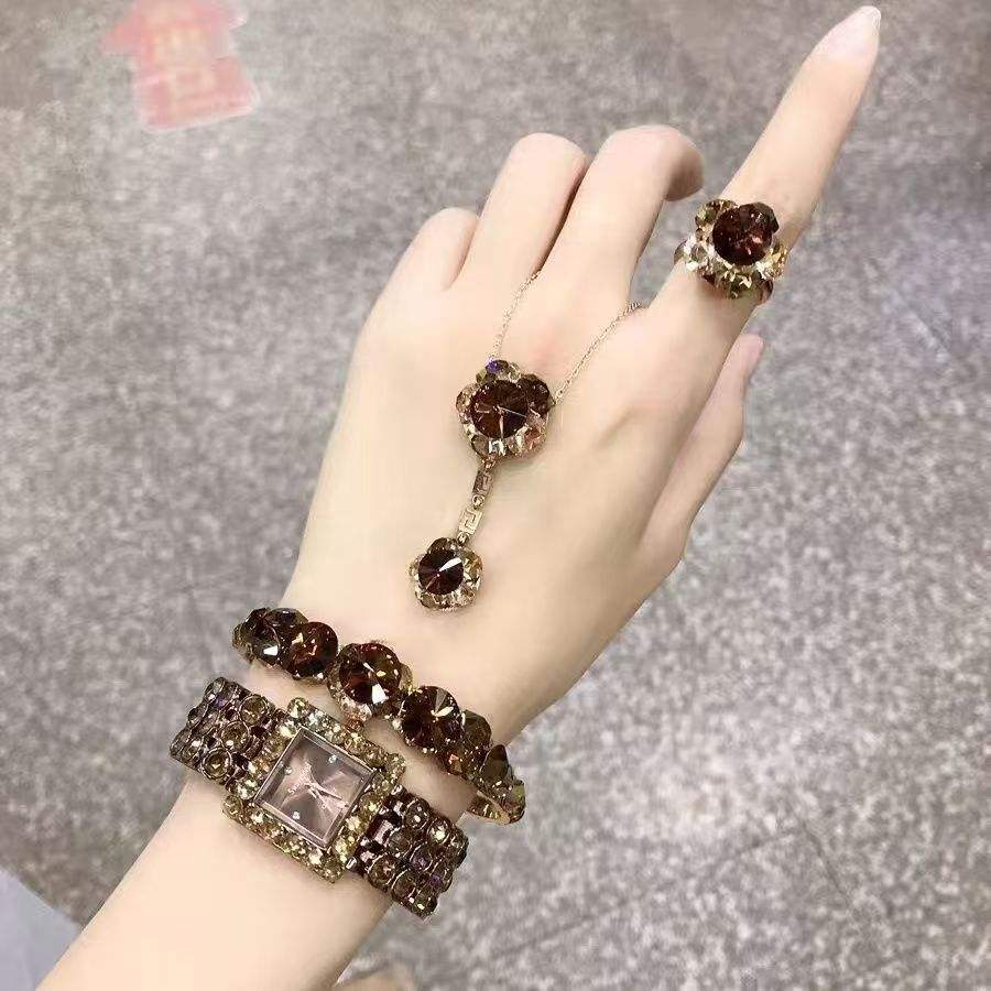 Original Design Women's Rose Gold Plated Stainless Steel Trendy Caramel Color Full Set High-End Jewelry Gift Ring Accessories