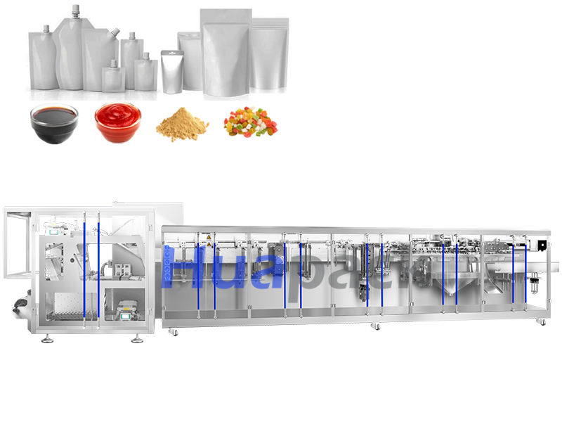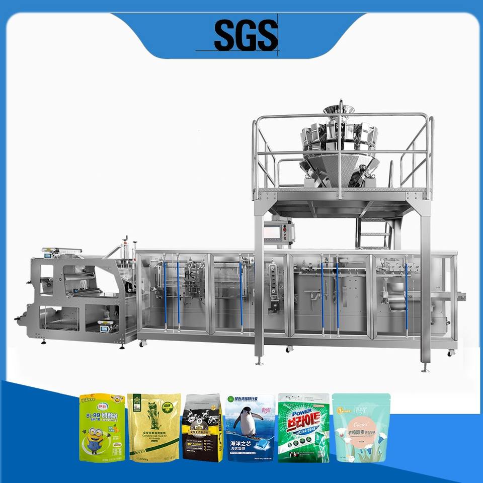 Original Factory Electric Automatic Horizontal Roll Film Duplex Doypack Double Filling Packing Machine Motor 2 Filling Nozzles