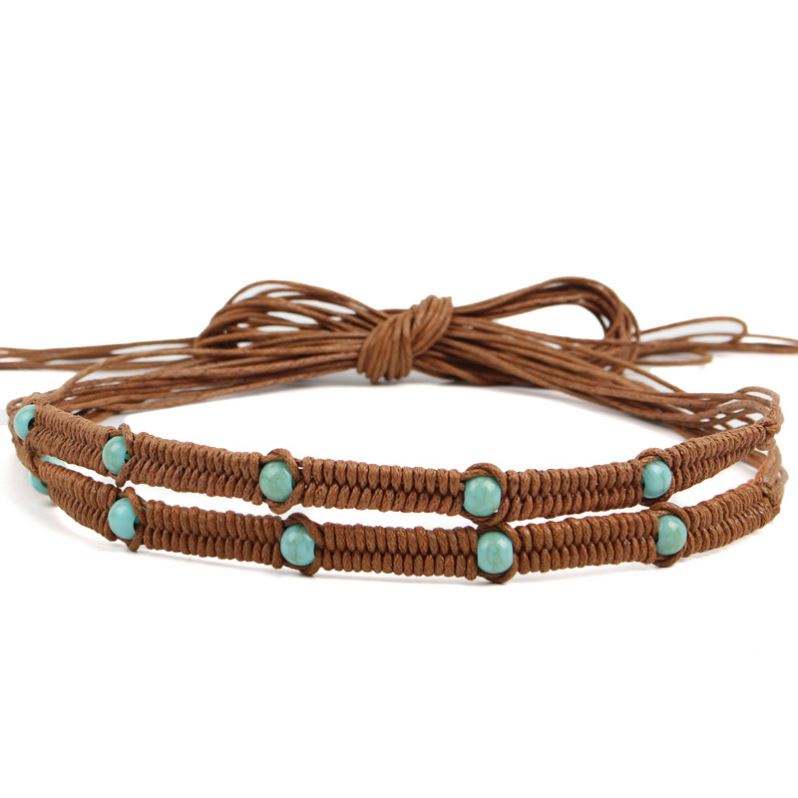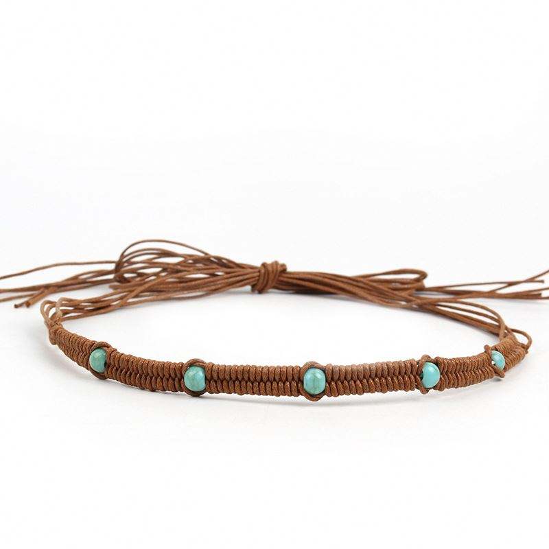 Original Fashion Multi-Functional Hand-Woven Wax Rope Belt Bead Decorative Cowboy Summer Hat Gaiter Accessories