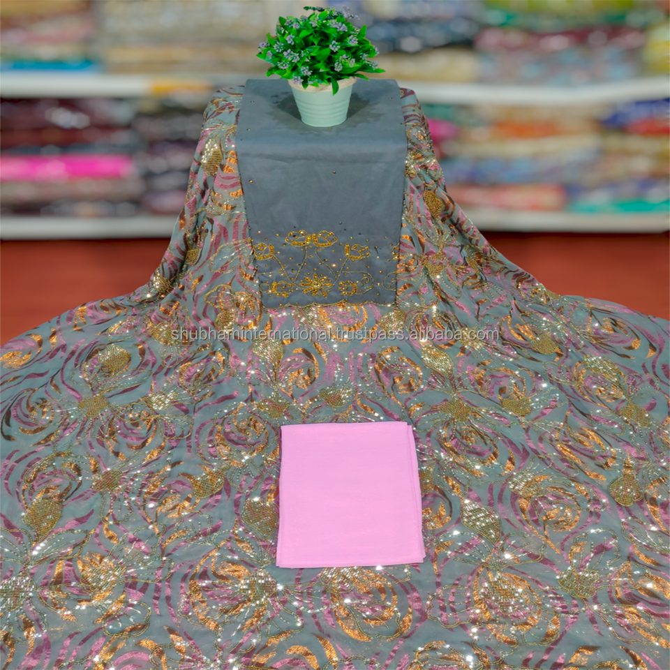 Original Fransawi Dirac Set for Somali Women Beaded Floral Jacquard Slub Eco-Friendly Wedding Dress with Heavy Stone Design