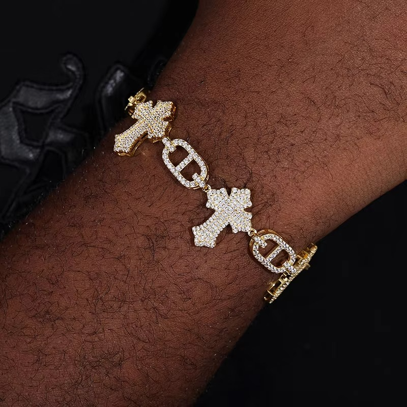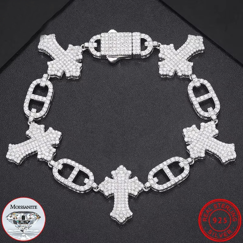 Hand Made Custom Jewelry Luxury S925 Sterling Silver Moissanite Diamond Charm Gold Silver Bracelet for Men & Women
