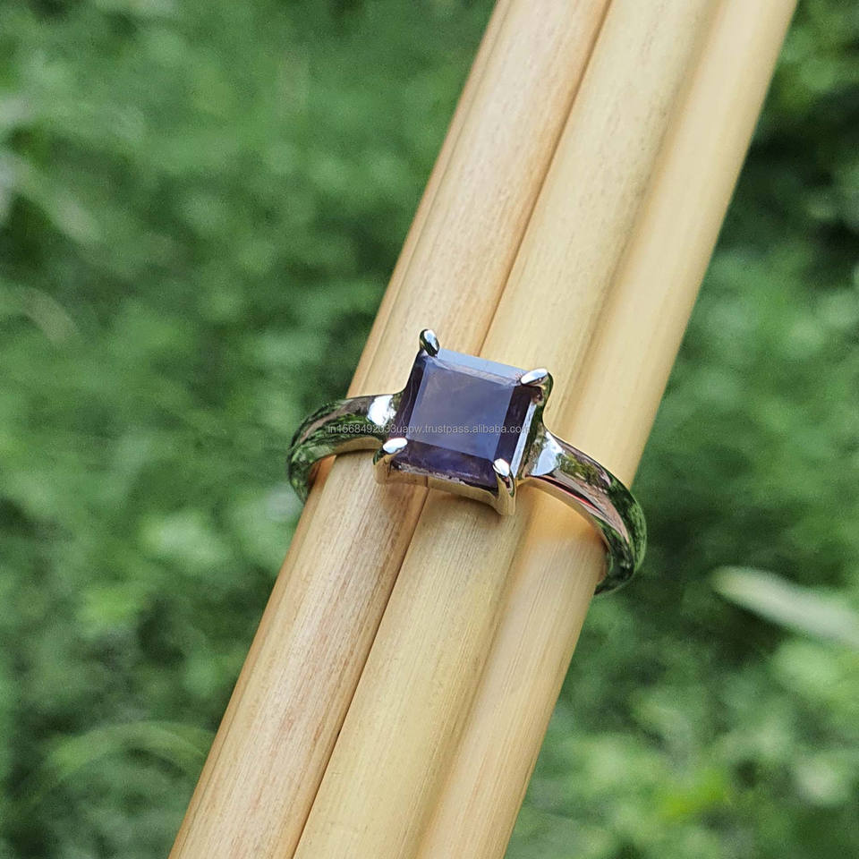 Original Iolite Handmade Dainty Stacking Birthstone Wedding Engagement Rings square Gemstone Moissanite Wholesale Jewelry