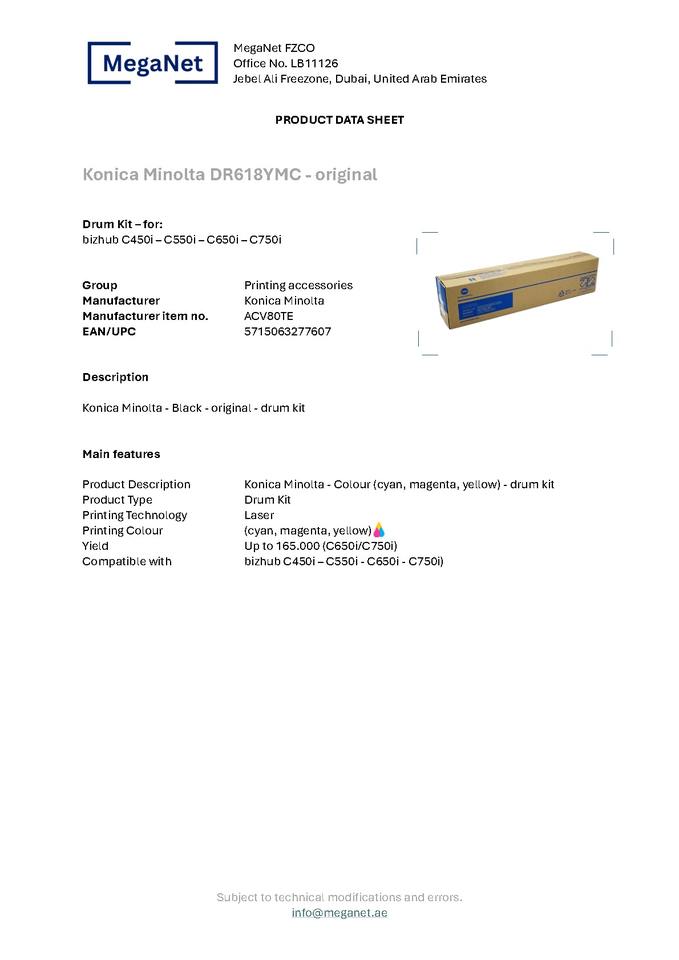 Original Konica Minolta Drum Unit DR 618YMC - ACV80TE Genuine and Brand New for Bizhub C450i / C550i / C650i / C750i