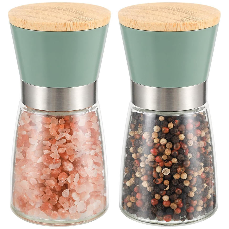 Original Manufacturer Manual Glass Bottles Dry Spice Grinder Mill Wood Bamboo Lid Salt and Pepper Grinder Set