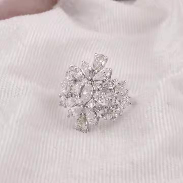 Original Moissanite Diamond Cocktail Ring Handmade 925 Silver with Marquise Cut Fine Engagement Ring