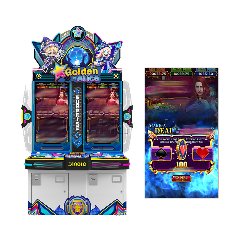 Original New Arcade Game Machine 32 Inch Dual Screen Golden Alice Brand Latest Version Multiplayer Ticket Machine Metal Spanish