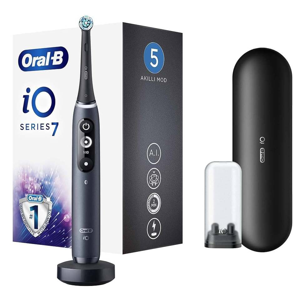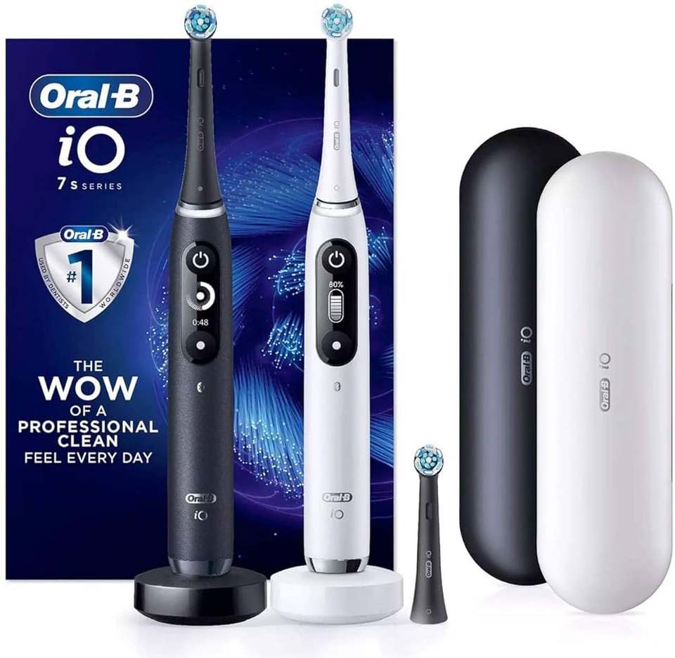 Original Oral-B iO Series 7 Electric Toothbrush Rechargeable with Black White Cross Action Bristles Medium Bristle Type